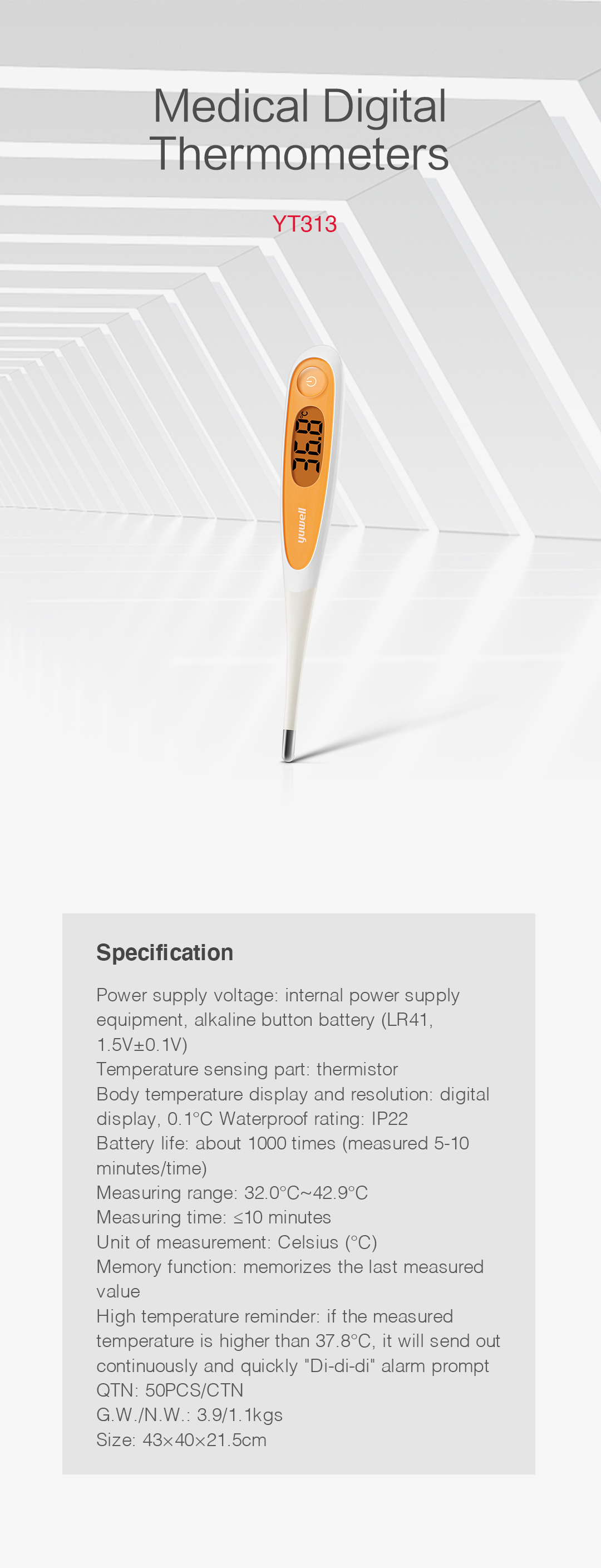 Measuring range: 32.0℃ ~ 42.9℃